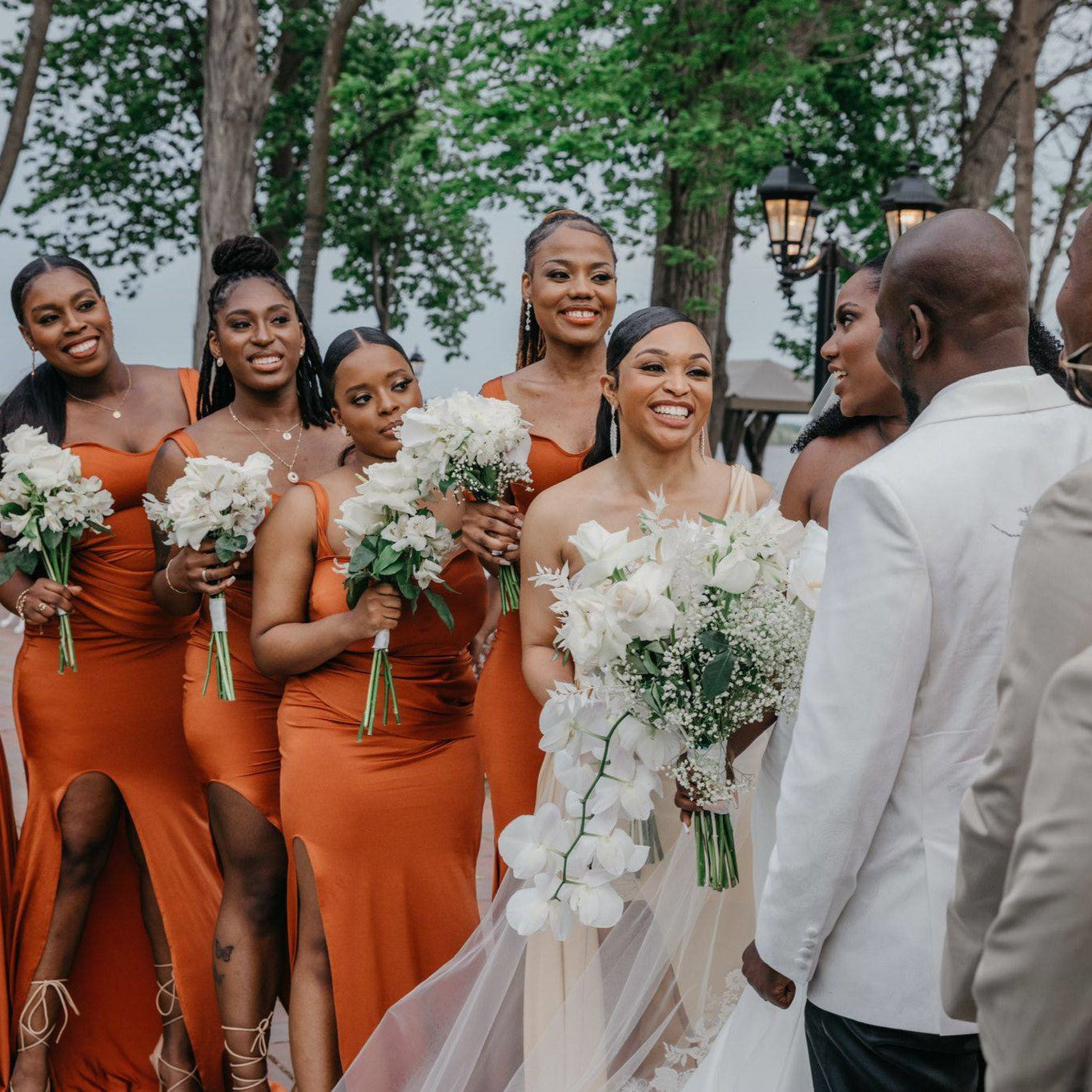 Créations harmonisées pour les demoiselles d'honneur, les mères des mariés et les accompagnateurs.